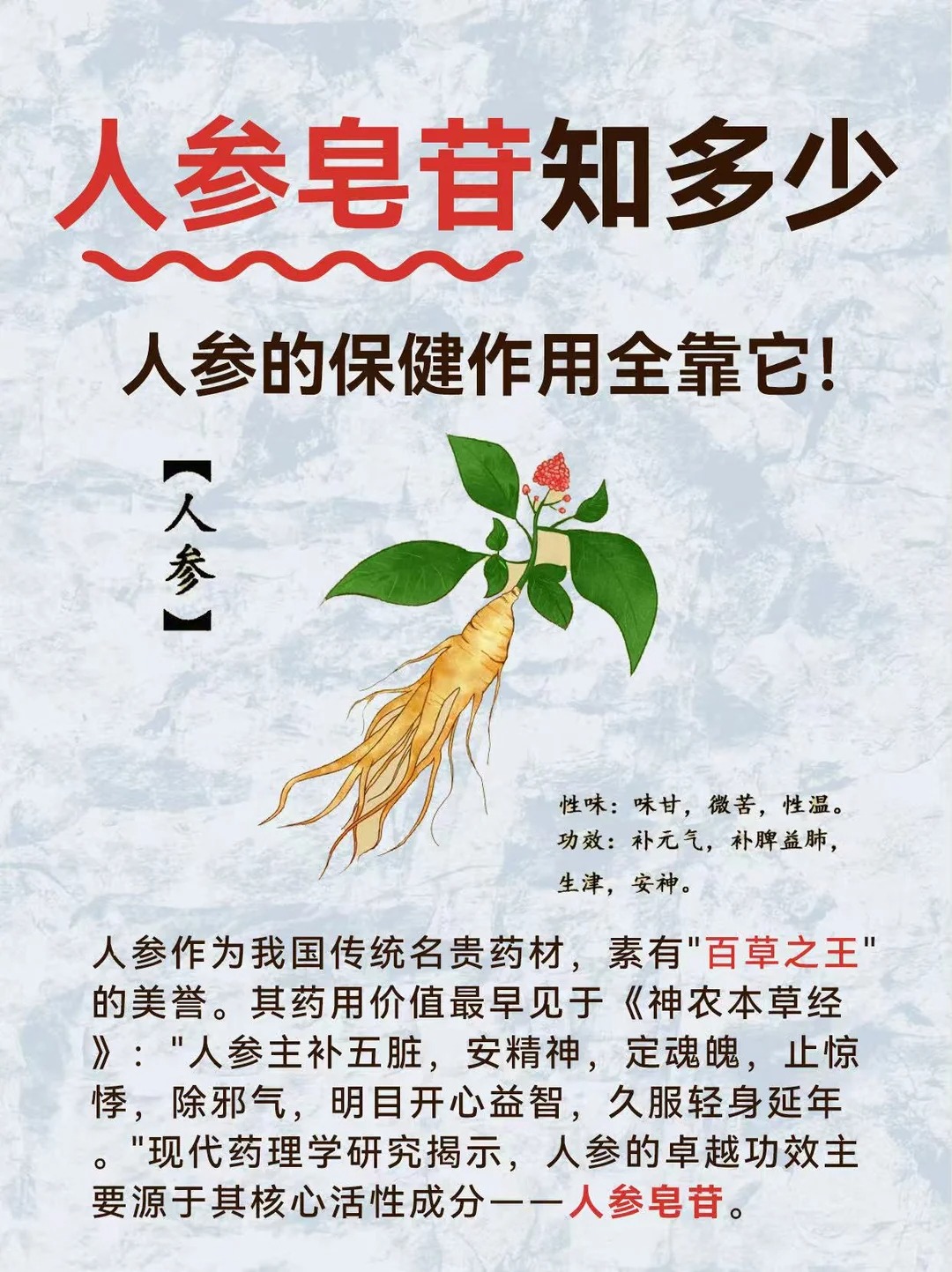 人参“百草之首”,为补气第一要药!大补正元之气以壮生命之本!简而言之,说人话就是:人参大补!