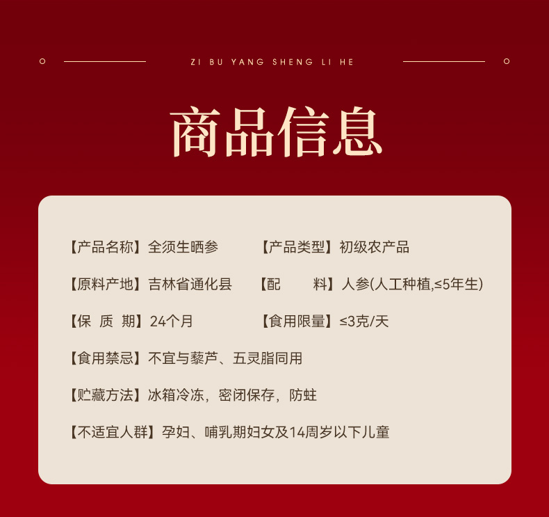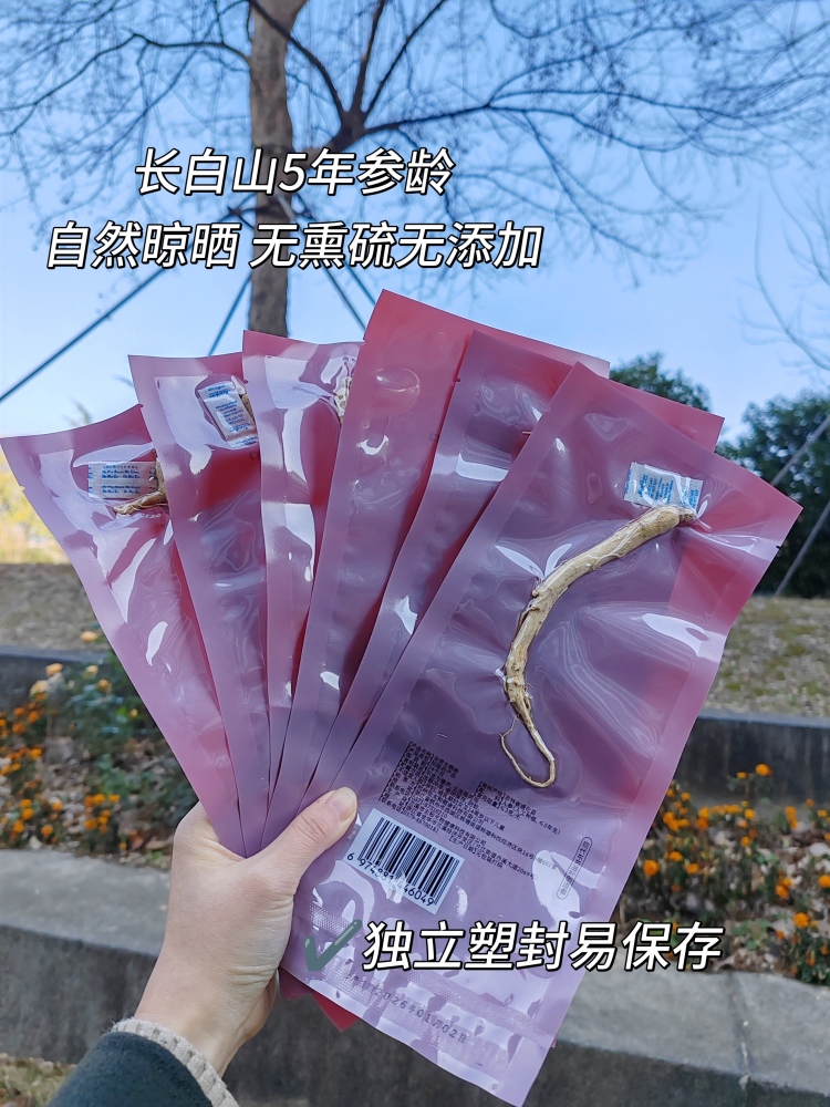 1、精选长白山5年黄金参龄,皂苷饱满,营养天成。每一支皆人工严选,形神俱备,天然晾晒零添加。