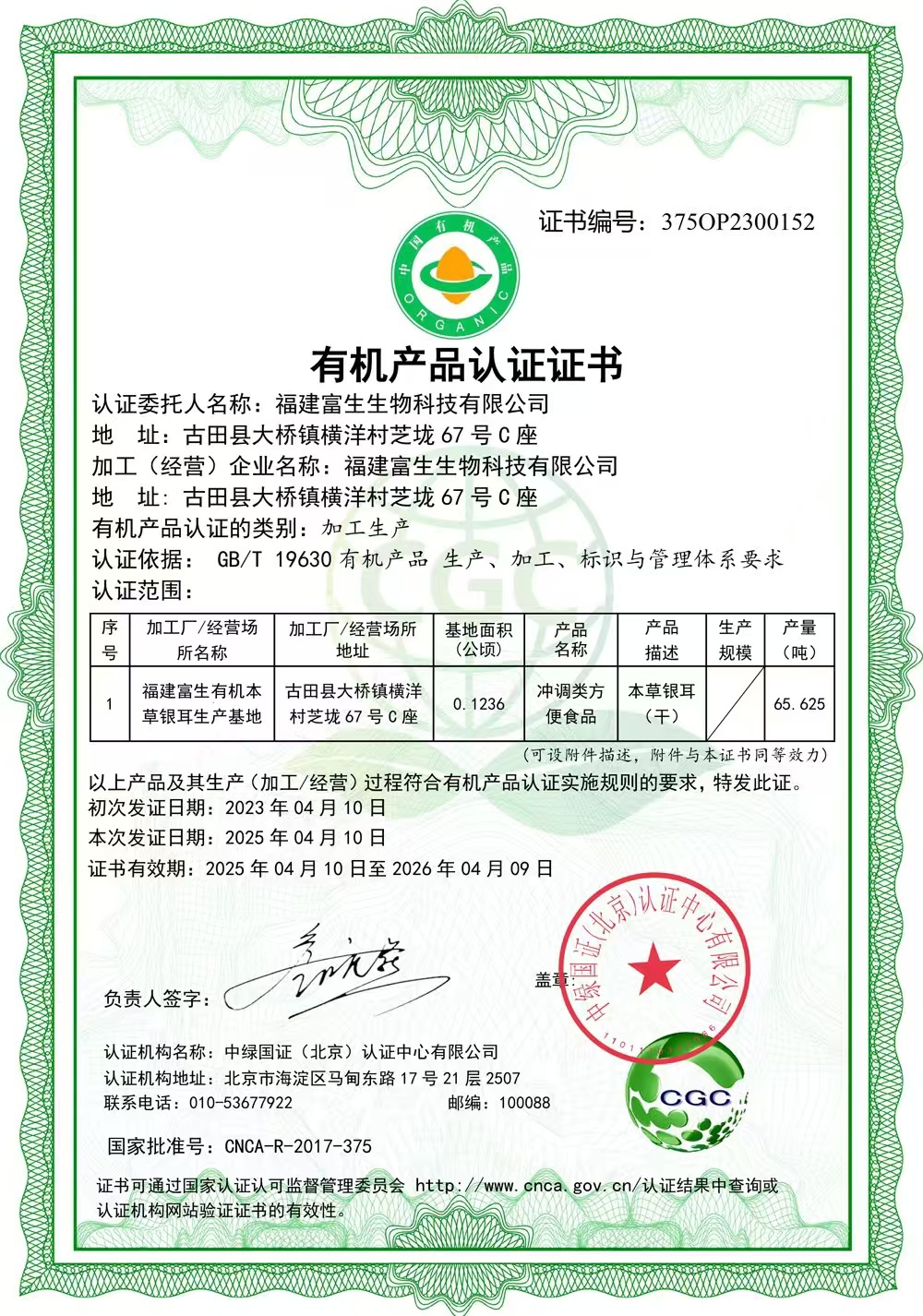 拥有双有机产品认证书,种植有机、加工有机,确保本草有机银耳无重金属、无二氧化硫、无农药残留。