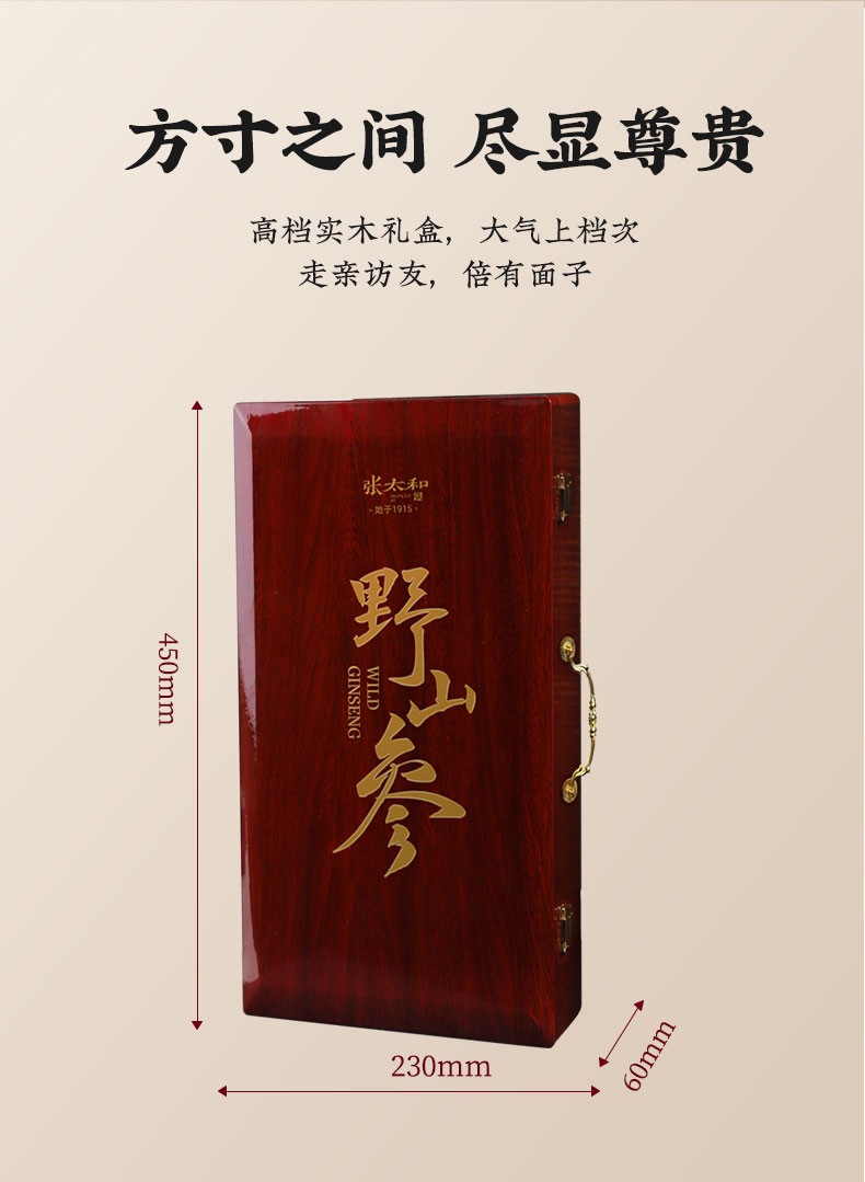 参龄 20 年,属于稀缺老参,滋补效果更强劲! 参形优美,芦头饱满,是身份与品质的象征。实木礼盒,高端感拉满,送给长辈或领导尽显诚意。