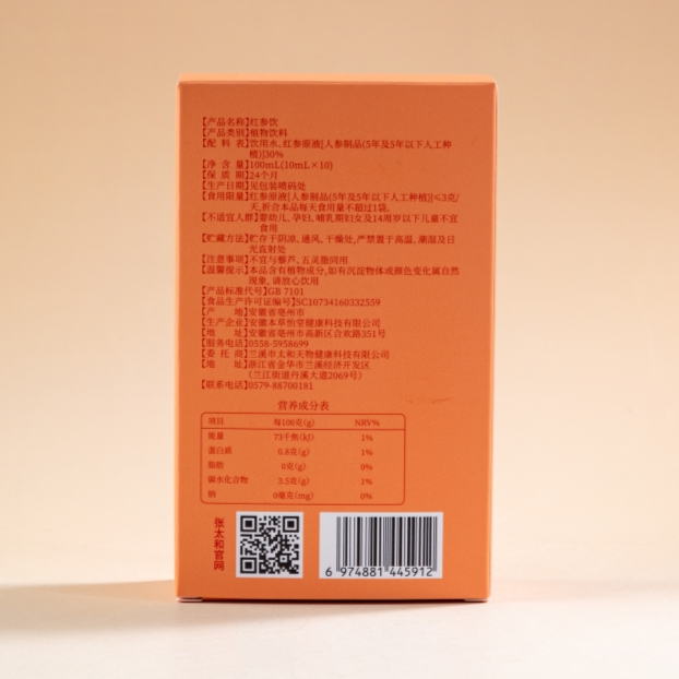每一小条(10ml)红参饮中,红参浓缩液的含量高达30%。