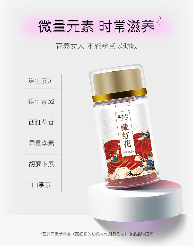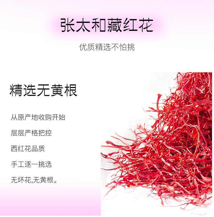 张太和藏红花,精选当年新花,花红素更高,营养更丰富,滋补气血效果更好。