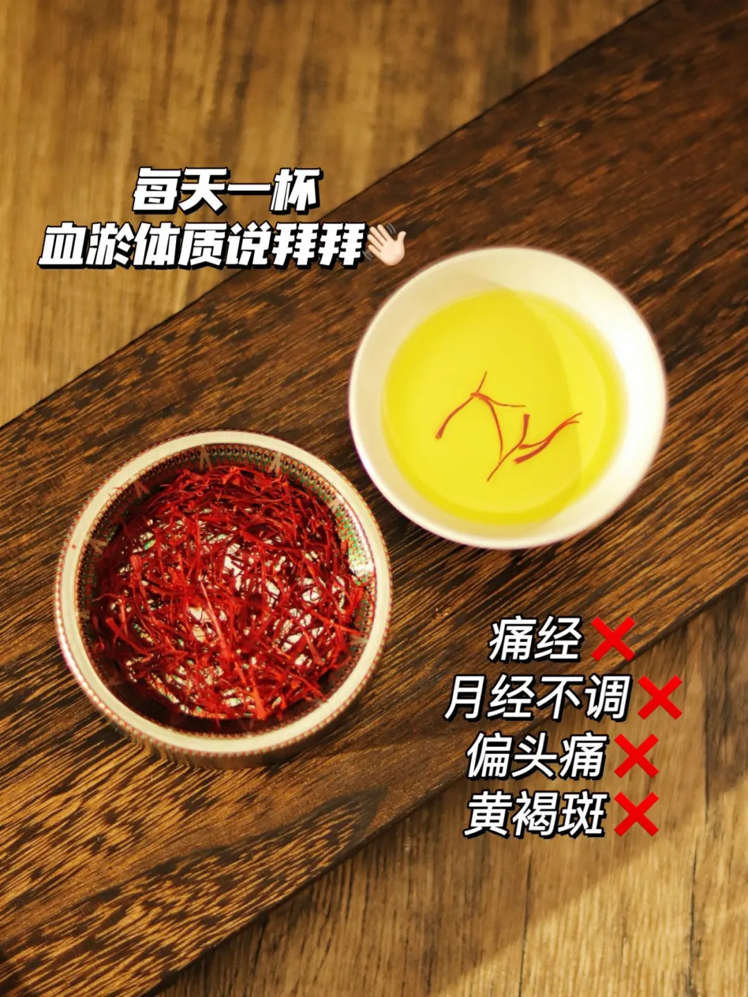 藏红花可以活血化瘀,改善痛经,暖腹养气色,温养子宫,能够疏血调经,改善内分泌系统;还可以解郁安神,坚持食用,可改善睡眠;美白淡斑,改善面部暗黄状态。