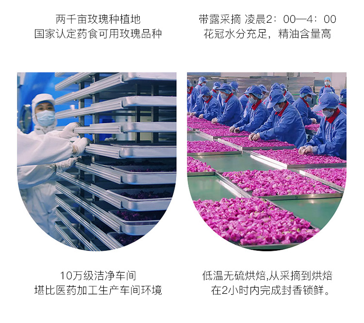 1、精选黄金纬度线北纬36°的山东平阴“玫瑰之乡”重瓣花冠玫瑰(中国唯一药食两用玫瑰),每朵花的品质都符合美国FDA食品出口标准,国内绿色食品认证。