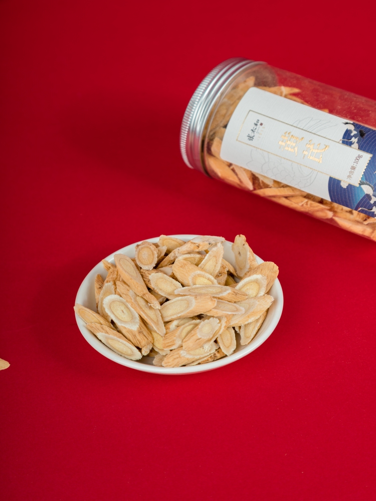 2、黄芪至今已有两千年的药用历史,严格筛选足龄大根切片,片片饱满。常用于煎汤或泡水饮。