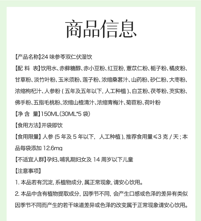 张太和24味伏湿饮,价格很美丽,配料很丰富!