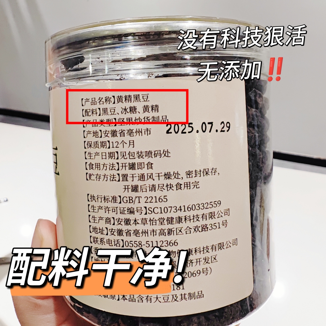 3.配料纯净 :仅黑豆、黄精、冰糖,无防腐剂,无香精,无色素,无甜蜜素。