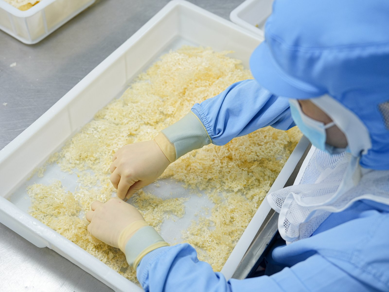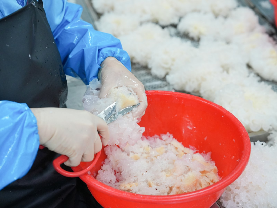 剪碎的银耳耳瓣还会进行鲜奶级别的巴氏杀菌!这样既不影响银耳的营养成分和口感,又能灭杀银耳中残留的有害细菌。