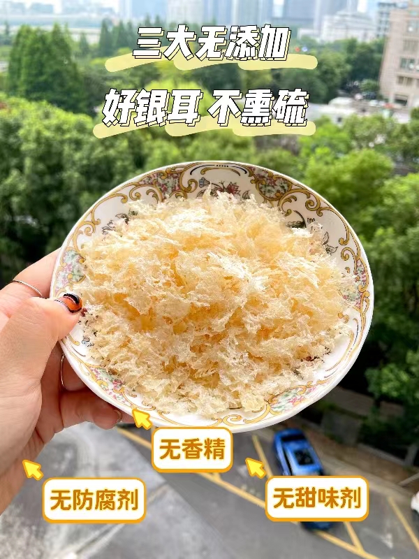 4、富含丰富的膳食纤维、银耳多糖等,为人体提供丰富营养物质。好银耳,不熏硫、无防腐剂、无香精、无甜味剂,保证道地食材。