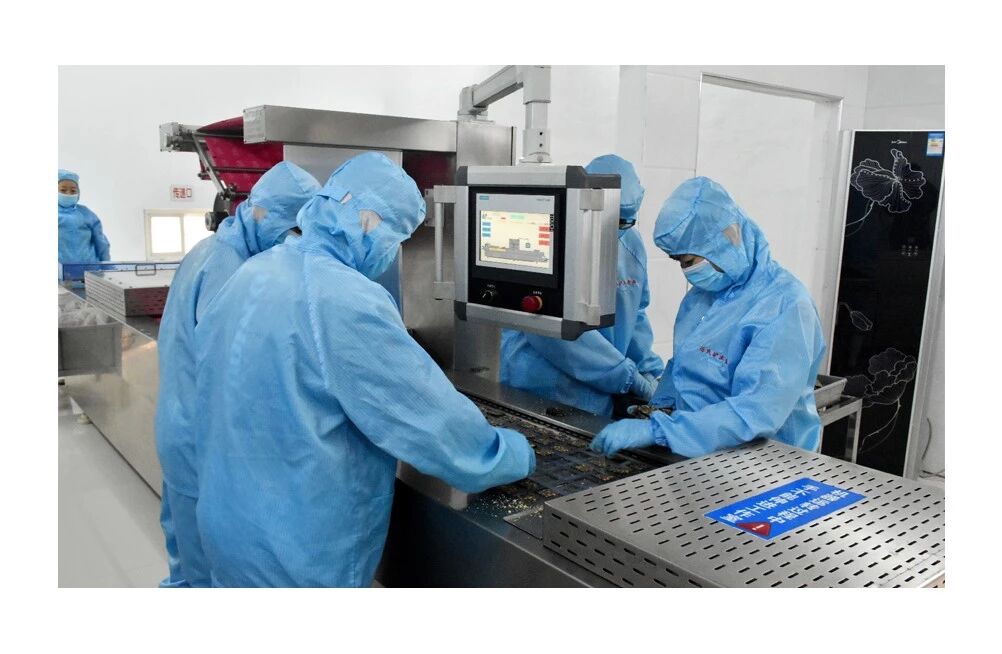 工厂拥有符合GMP要求的10万级净化车间,阿胶糕的生产从配料、熬制、切糕、晾糕、内包等都在净化区域内进行,全程透明化。