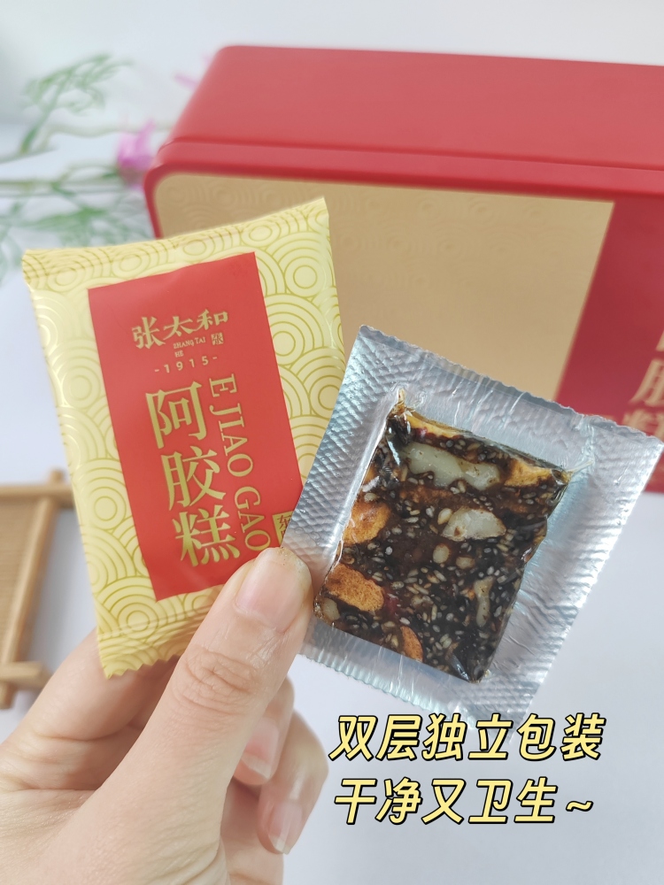 张太和的阿胶糕都是独立的小袋装,真空包装设计,开袋即食,安全放心,也方便储存与携带。