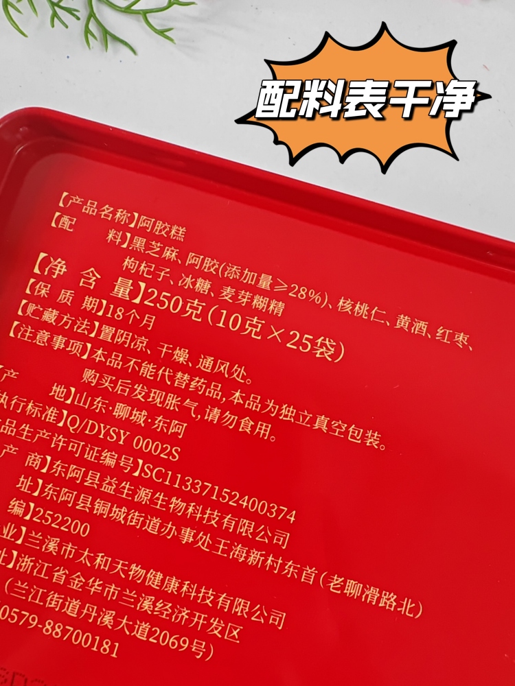 配料表干净,0防腐剂,0明胶,0色素,0香精