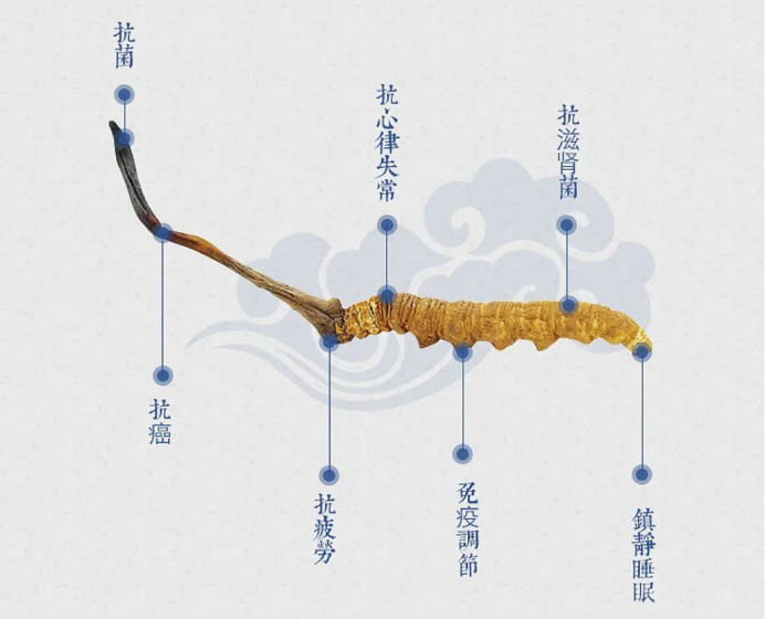 虫草素的功效属性关键就在于它具有强大的免疫调节和免疫修复作用。冬虫夏草主要含有核苷(如虫草素)、虫草多糖、甾醇、虫草酸等主要活性物质,正是凭借着这类成分,冬虫夏草能有效发挥抑制外来病毒的作用受到关注。
