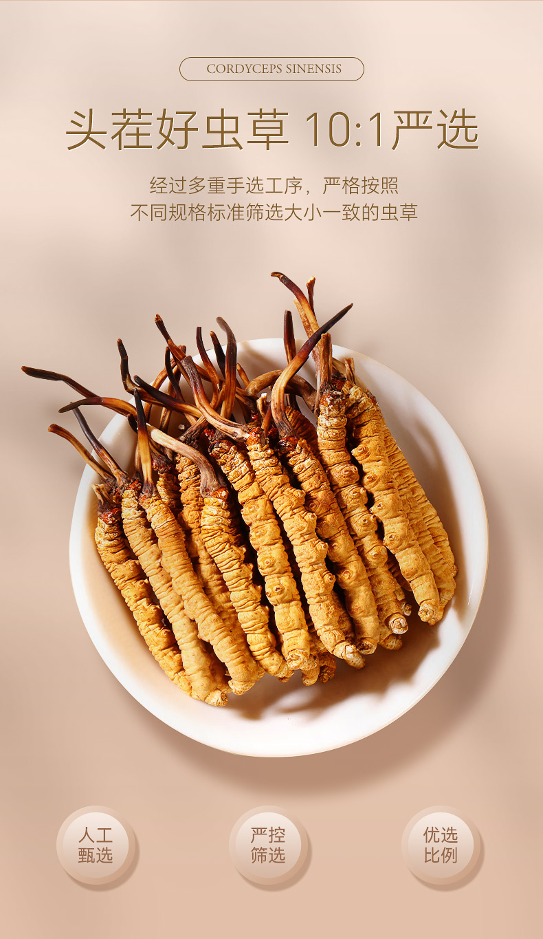 1、甄选西藏高海拔地区优质虫草,深入核心产区,专注品控源头,产量有限,弥足珍贵。