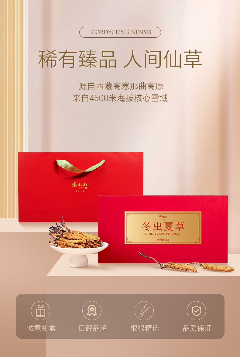 产量有限,弥足珍贵。批批溯源,产地可控。严格控制产地,每年从新采挖的冬虫夏草中,优中选优,甄选符合张太和标准的冬虫夏草,产量有限而弥足珍贵。