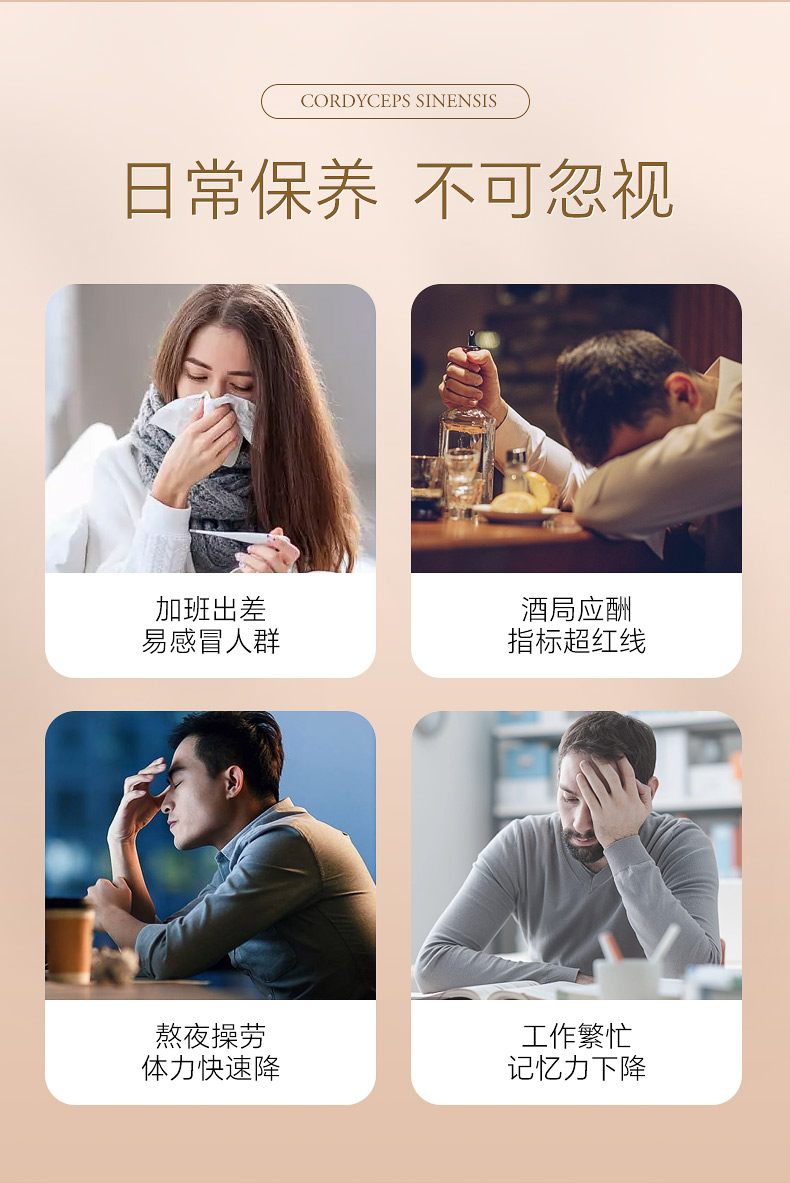 特别是易感冒、酒局应酬多、身体指标红线、熬夜操劳、体力透支、工作压力大、记忆衰退、神情疲乏、年老体弱、术后恢复、身体疼痛、咳嗽虚喘等症状的人群。