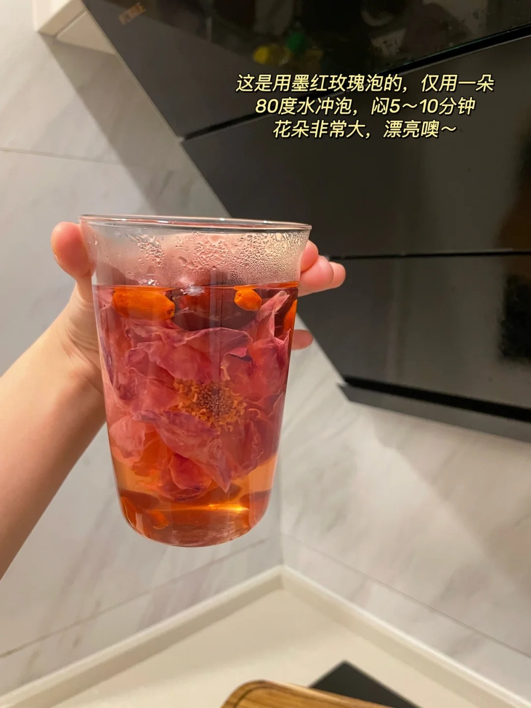 跟着神仙姐姐一起喝墨红玫瑰,原来可以冷泡,味道真的不一样了,一杯一朵,好看又好喝,get神仙姐姐同款