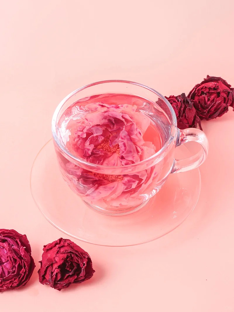 6、一朵即可泡满杯,汤色清透,玫瑰茶清香怡人,以花养颜,人比花娇,喝出好气色。