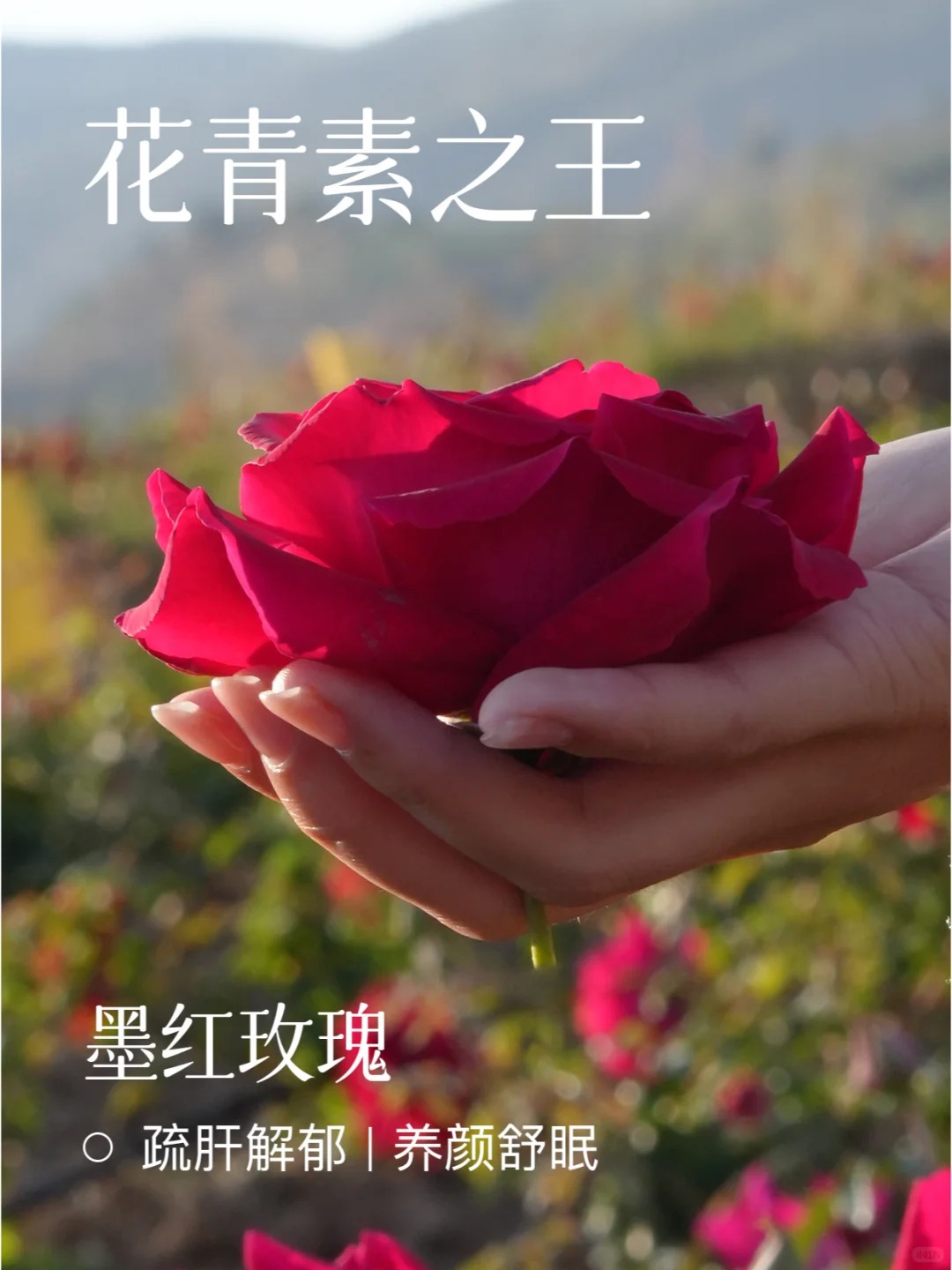 1、法国引进,云南昆明种植,采用花中王后——墨红玫瑰,花青素极高。