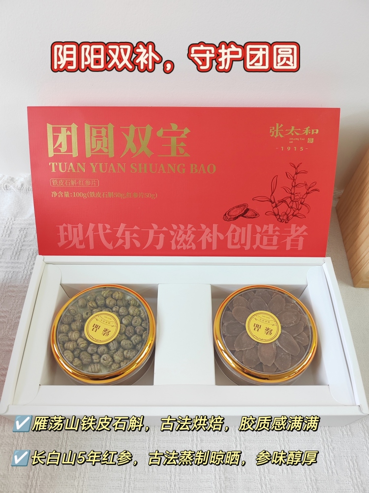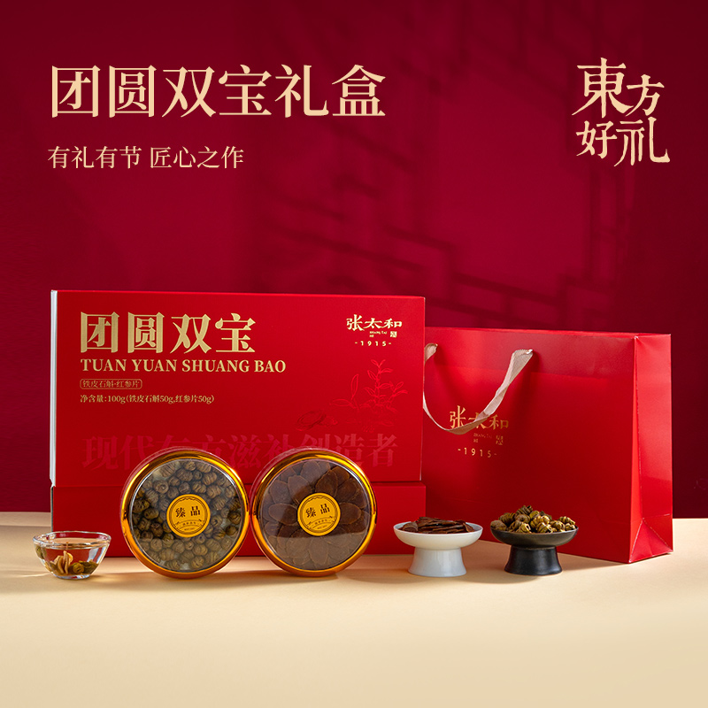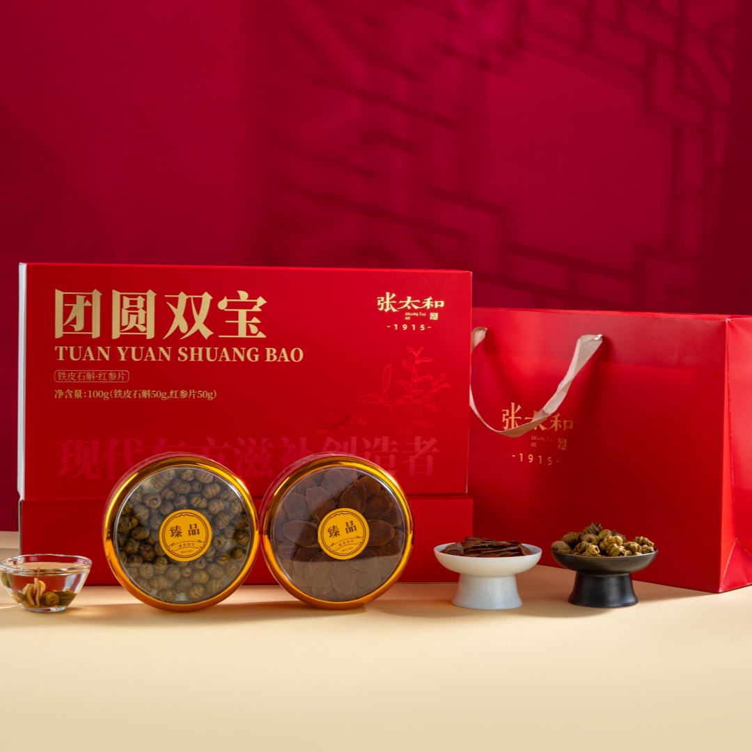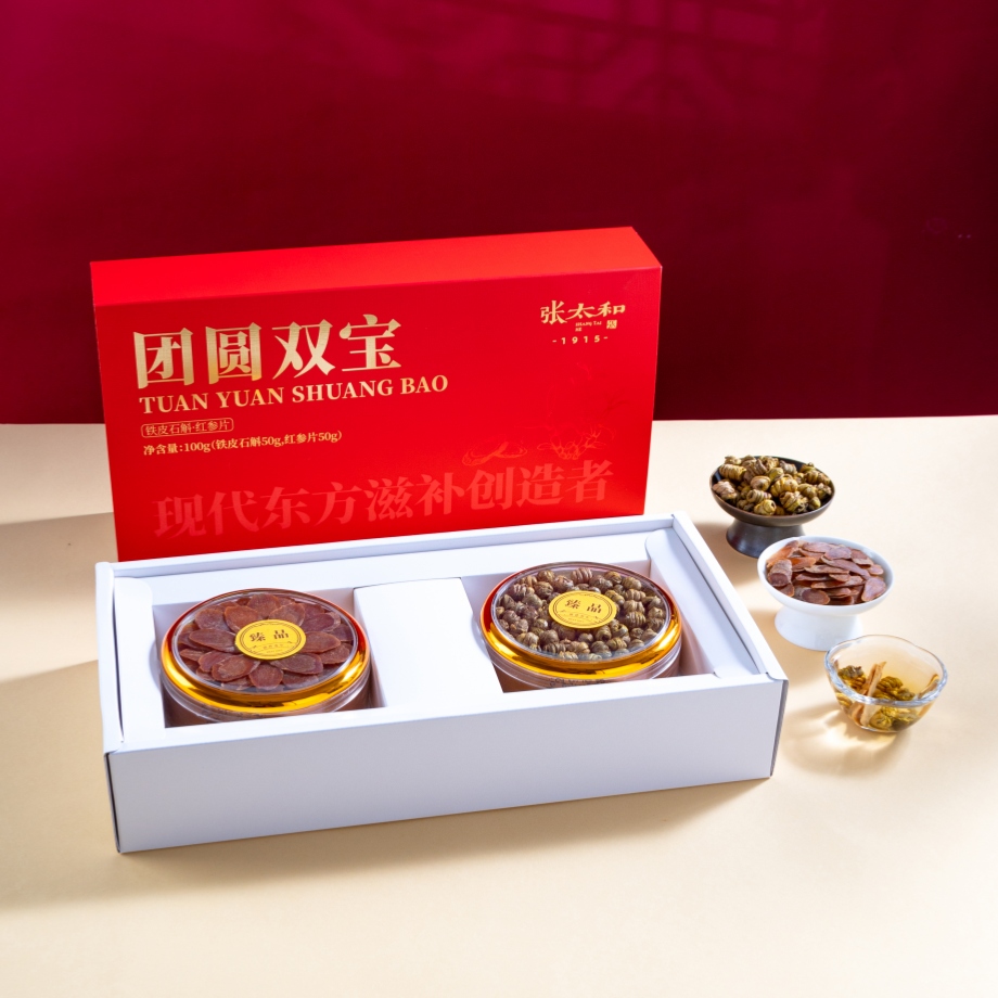 张太和「团圆双宝礼盒」——铁皮石斛润燥滋阴,长白山红参补气提神,