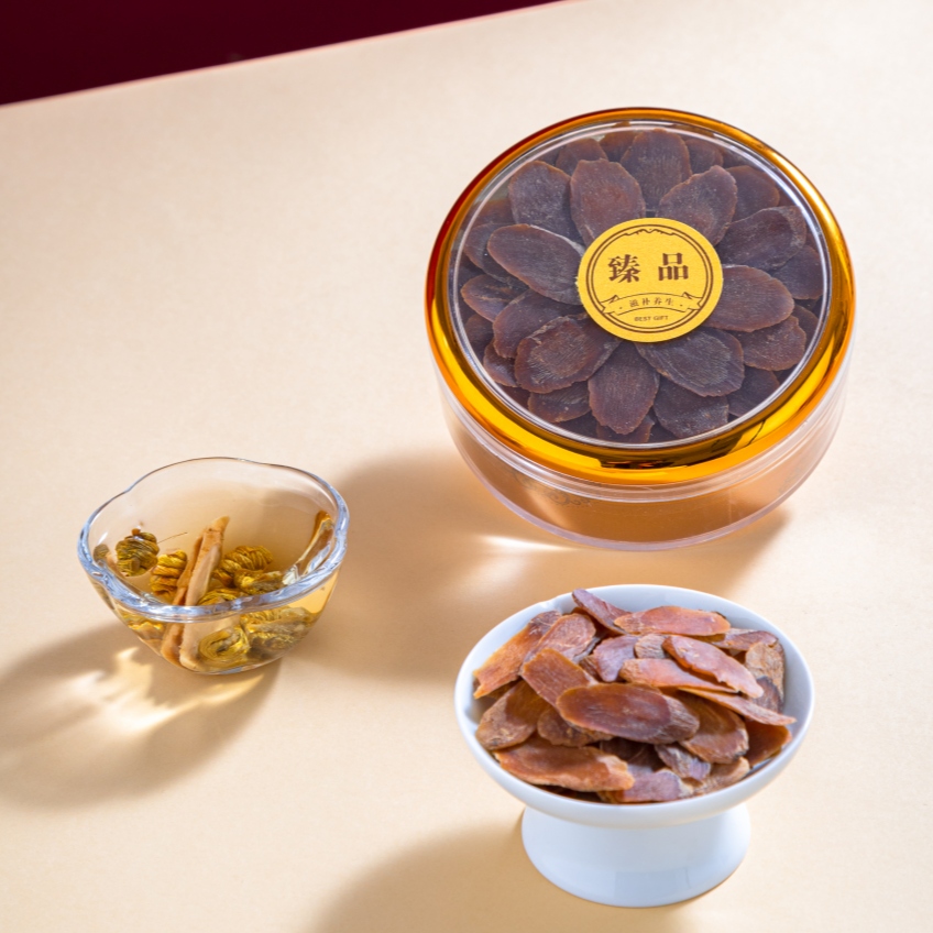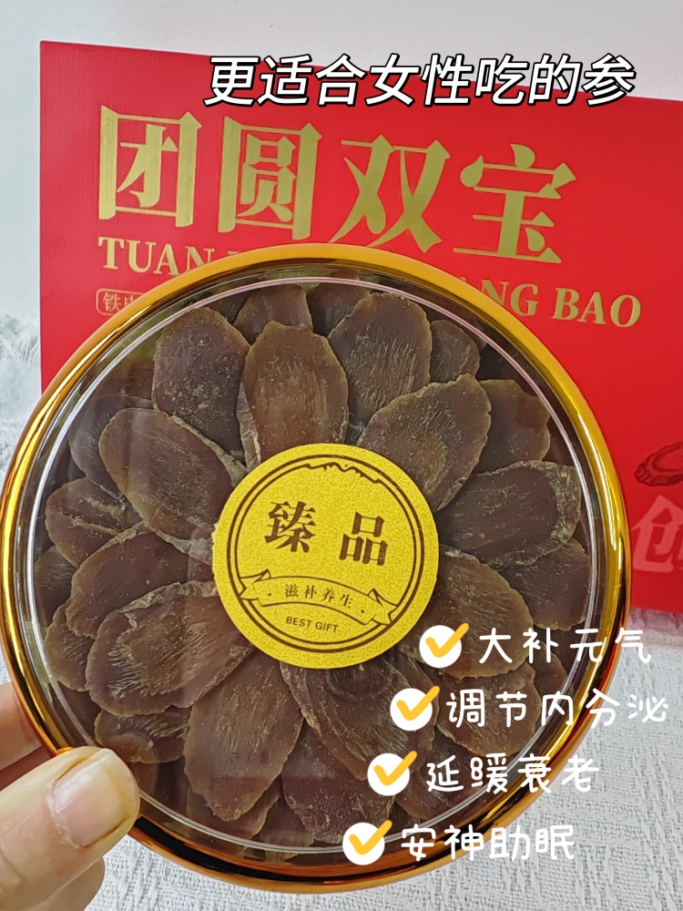 2. 长白山红参片:甄选五年足龄参根,古法蒸制晾晒而成,全程无糖添加。参体饱满,色泽温润如蜜,气味醇正,保留红参天然温补之力。