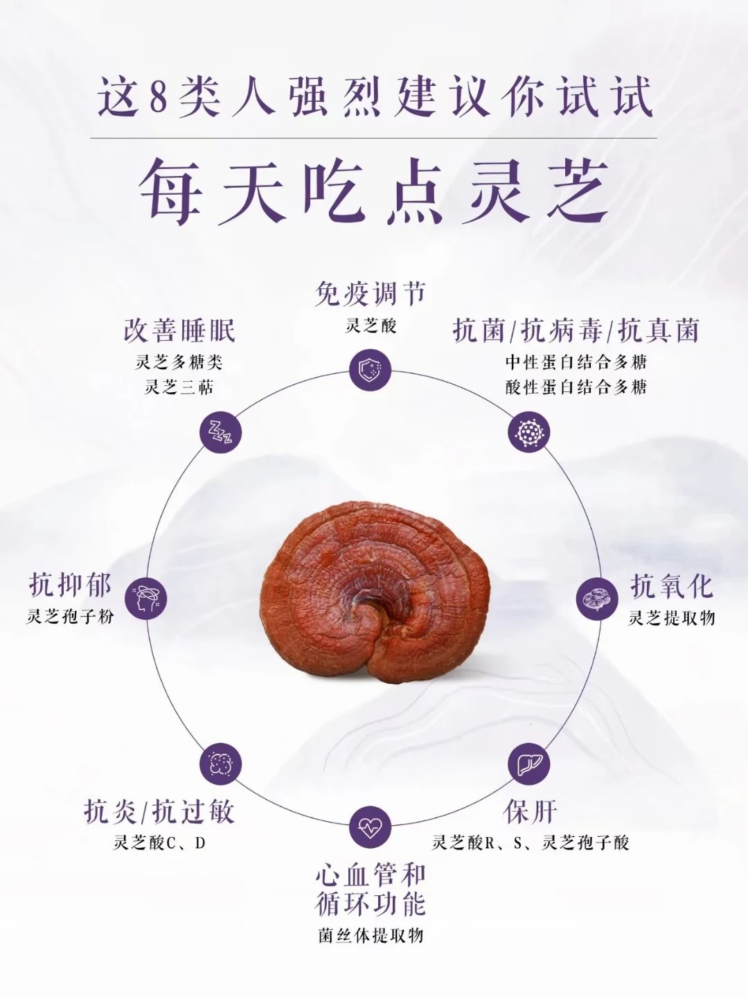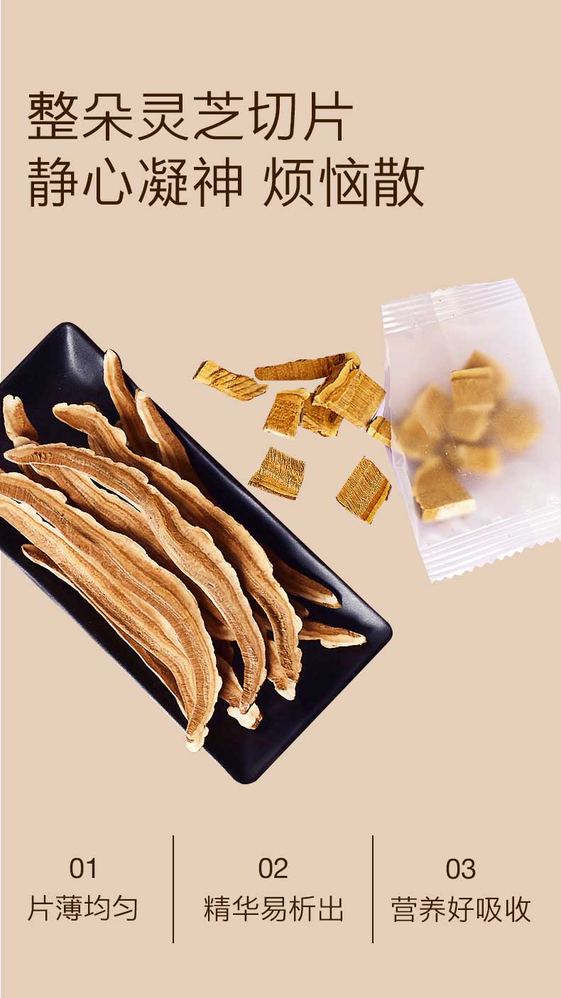 再以现代精研工艺,低温切片,完整保留其活性成分——灵芝多糖、三萜类化合物得以高效释出。