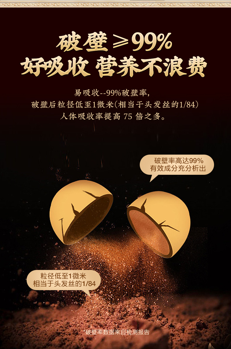 ✅采用先进低温物理破壁技术 ,破壁率≥99%,远超于国家95%的标准。