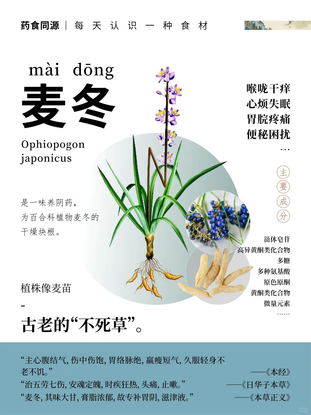 ✅ 润燥养颜:麦冬滋阴,换季皮肤干燥、喉咙痛有缓解!