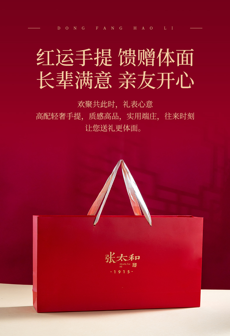 经典中国红礼盒,搭配同款提袋,设计稳重大方,传递吉祥寓意。