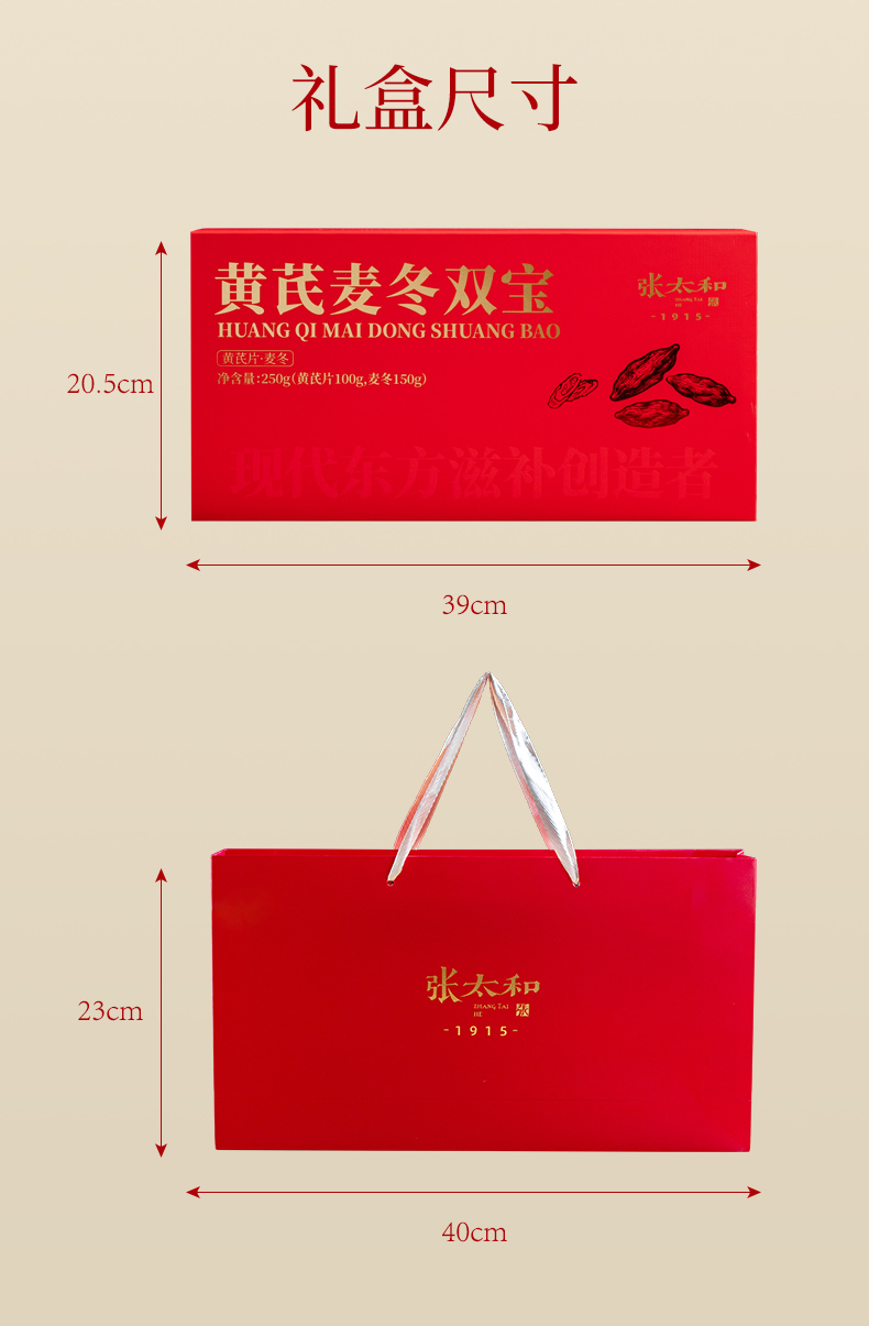 4.250g 科学配比,精致礼赠优选:内含甘肃陇西黄芪片 100g + 四川绵阳麦冬 150g,黄金比例搭配,满足长期食用需求。高级中国红礼盒设计,搭配同款礼袋,拎取便捷,无论是走亲访友、探望长辈还是商务馈赠,送的是道地养生双宝,更是一份细致贴心的健康关怀。