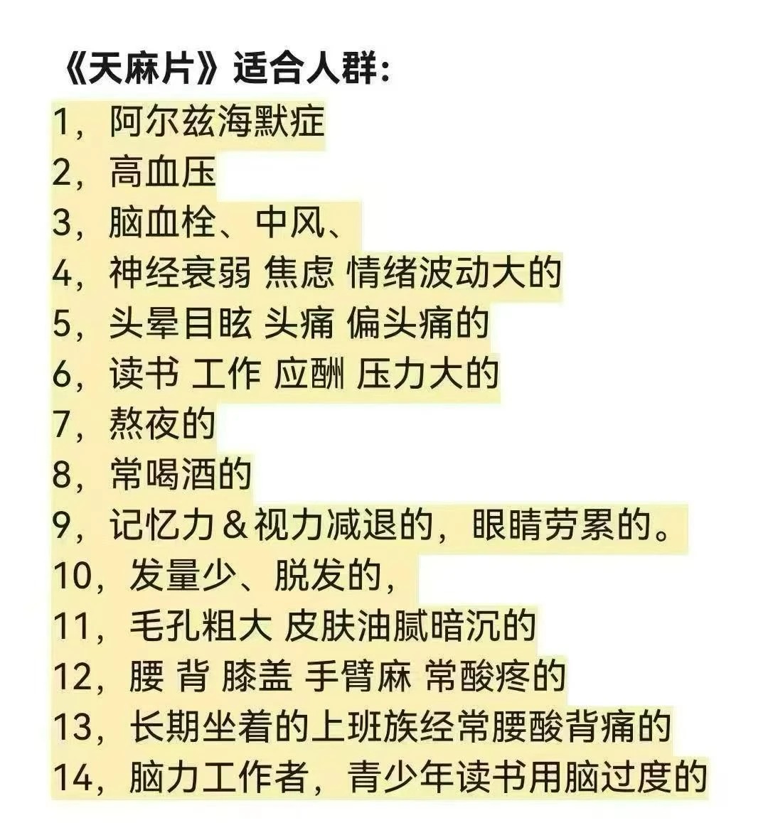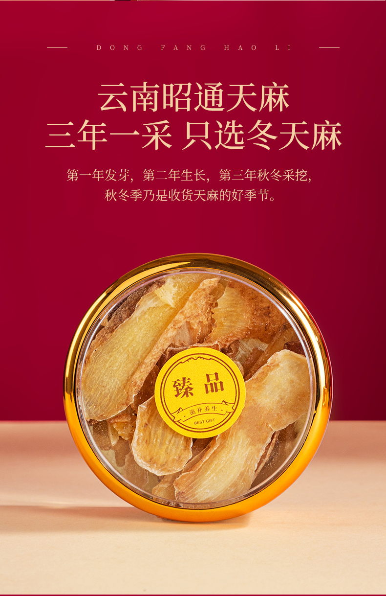 6.天麻被誉为“三抗、三镇、一补”的神奇药材,即抗癫痫、抗惊厥、抗风湿;镇静、镇痉、镇痛;补虚。品质道地,温和食补、调和偏性、补而不燥。