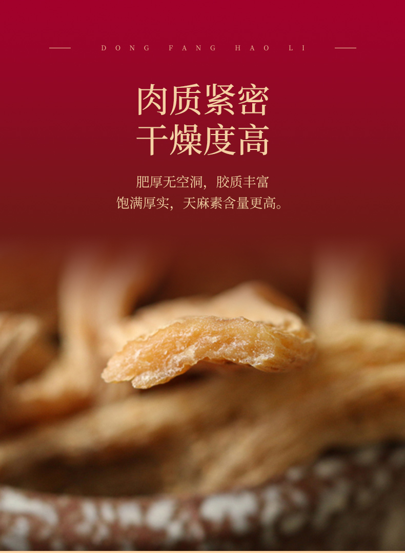 3.手工挑选大片天麻,肉质肥厚,厚实饱满,天麻香气浓郁。