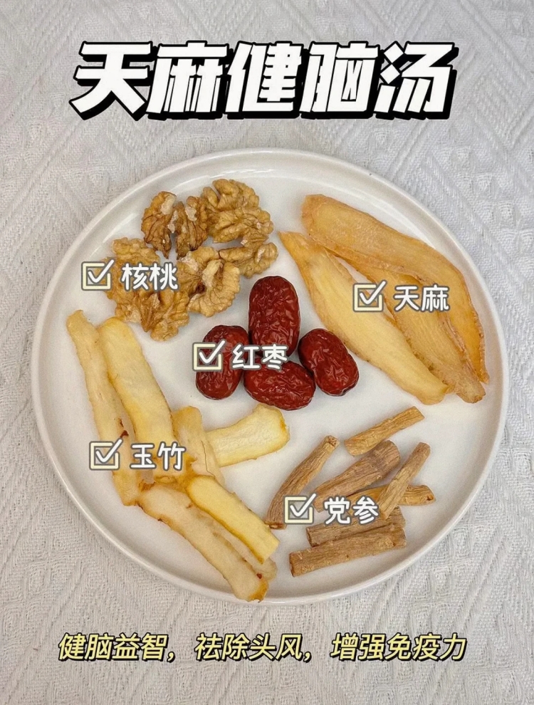晨起一杯天麻水:取2-3片天麻,热水冲泡或短暂煎煮,清香微甘,为头脑开启清醒宁静的一天。