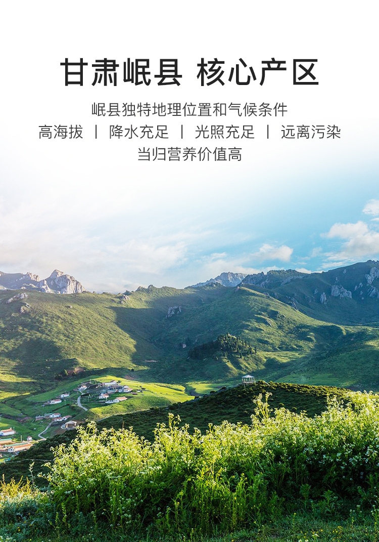 1.甄选甘肃岷县应季当归,依托当地得天独厚的地理环境,远离工业污染,土壤肥沃、气候适宜,孕育的当归营养成分更富集。