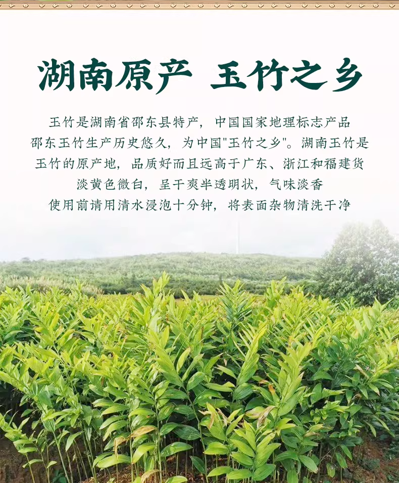 1.精选湖南邵东道地玉竹,作为邵东特色名产,当地温润气候与肥沃土壤孕育优质玉竹,从源头保证道地品质。
