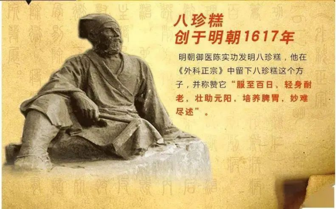由8种天然食材组成,明代医家陈实功称赞八珍糕道:“服至百日,轻身耐老,壮助元阳,培养脾胃,妙难尽述”。