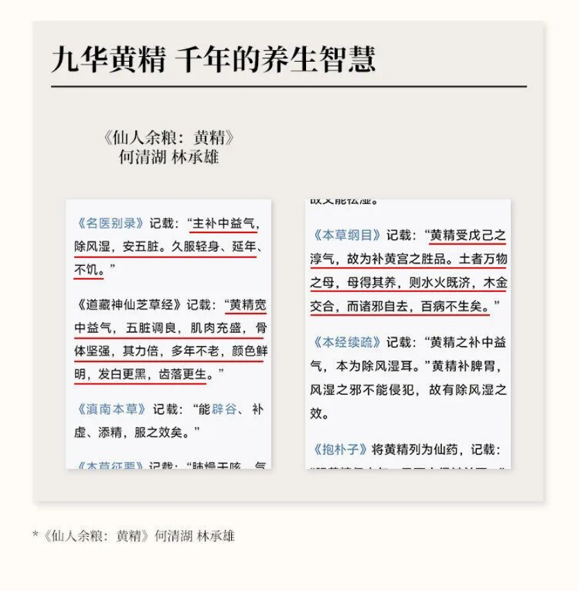 6.传统背书+现代研究双重加持。作为中医传统“药食同源”食材,黄精在《本草纲目》等典籍中早有记载,如今现代研究也证实其含黄精多糖、皂苷等活性成分,更有科学依据,让人更放心。