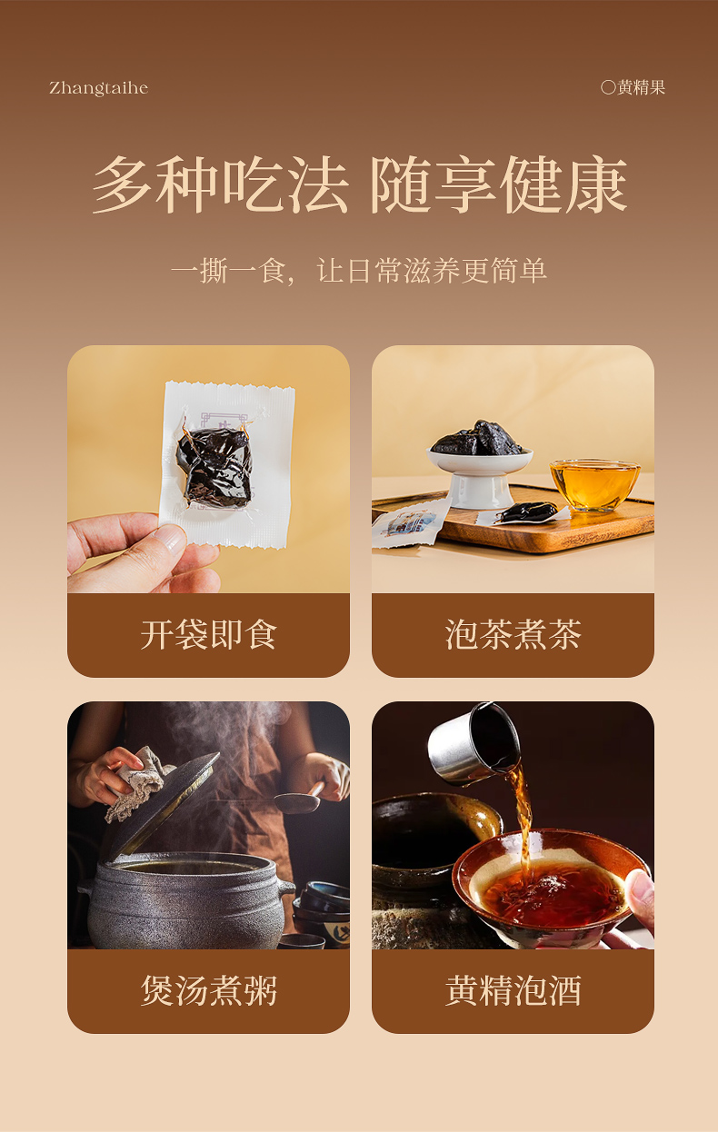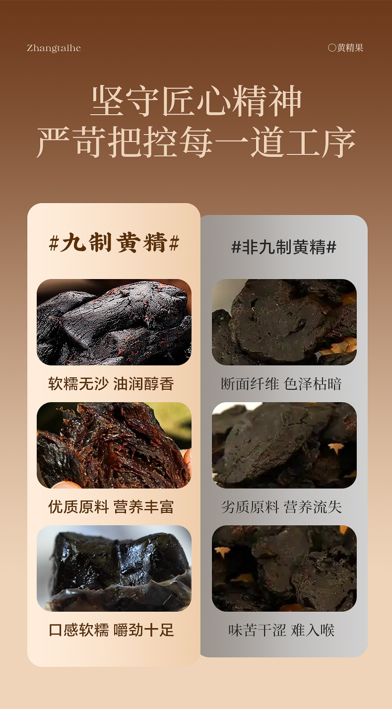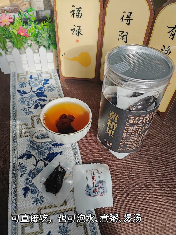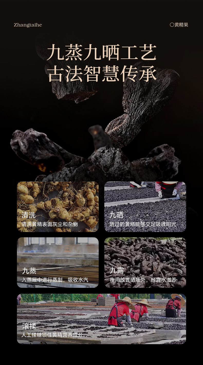 张太和这款便是精选九华山上生长6-8年的黄精果,遵循九蒸九晒古法炮制,黄精由黄变黑,营养更甚!