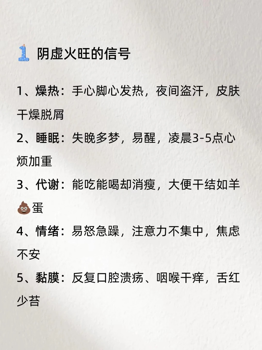 ✅ 熬夜多、阴虚内热、手脚心偏热