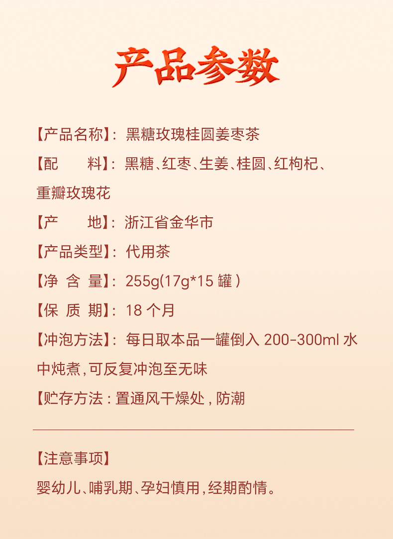 1、甄选6味药食同源好物,古法黑糖、宁夏枸杞、平阴玫瑰、新疆红枣、莆田桂圆、云南黄姜,精准科学定量,传承古法祛寒配方