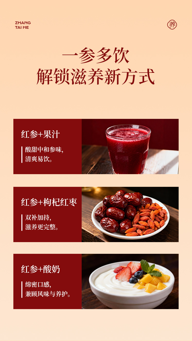 搭配果汁:中和红参本身味道,带来酸甜适口的饮用体验