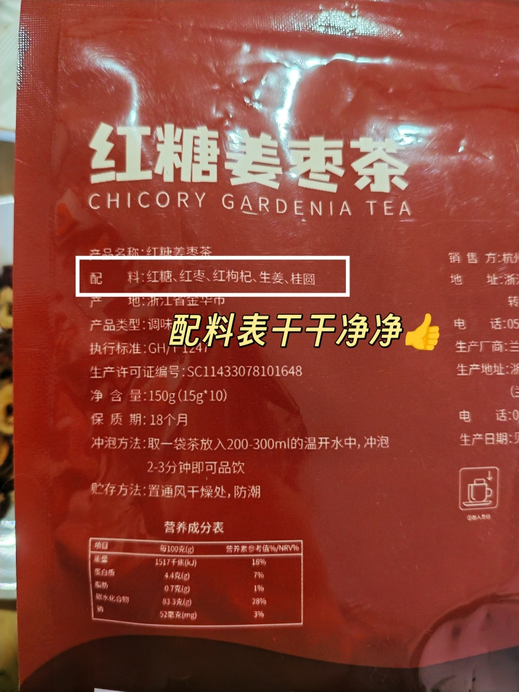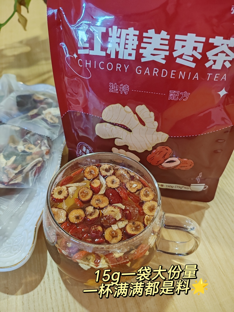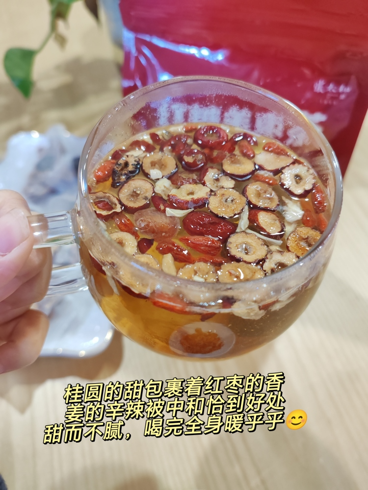 能看到大块的红糖、饱满的枸杞、脆甜的红枣片、细腻的姜丝、圆润的桂圆肉,都是真材实料,喝着特别放心✔️