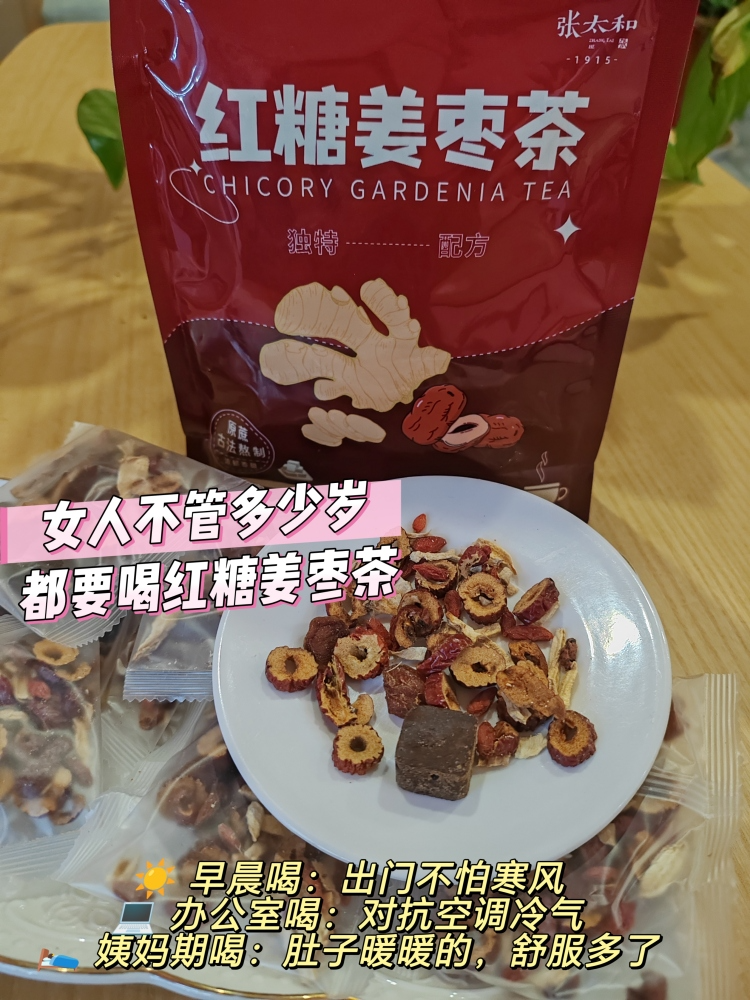 这款红糖姜茶在口感和功效的平衡上调整多次,姜味闻起来浓,但是口感又不是特别辣!张太和的红糖姜枣茶,辛而不辣,甜而不腻,非常适合现代人的口感。