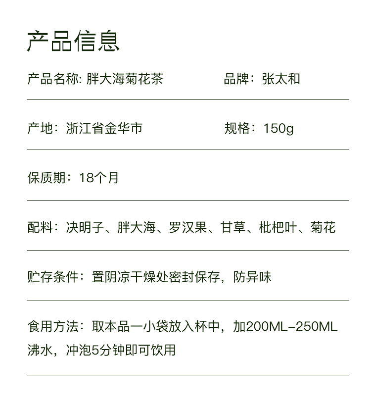 张太和胖大海菊花茶150g